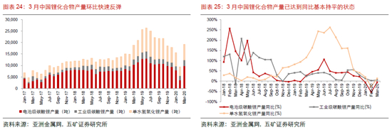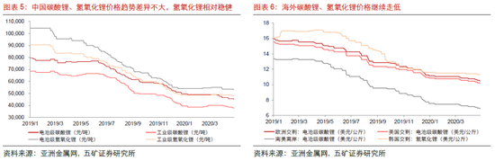 一季度电池级碳酸锂产量受影响较大:20Q1中国电池级碳酸锂产量21435吨,同比下滑19.7%,受疫情和市场低迷的冲击较大,同期工业级碳酸锂产量6150吨,同比增长7.0%,氢氧化锂产品总产量16660吨,同比增长2.6%。