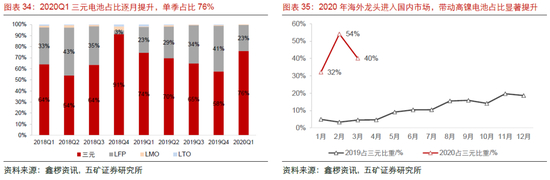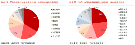 分企业看,装机量份额高度集中,海外龙头开始发力。据鑫椤资讯统计,3月三元和磷酸铁锂电池装机总量约2.75GWh。其中,CATL装机量1.22GWh排名榜首,但市场份额下滑至44%,20Q1整体市占率约50%;LG Chem的3月装机量由特斯拉所拉动,凭借高镍三元,其装机市占率达到19%,排名第三,20Q1的整体市占率也达到11%。集中度方面,3月TOP 10装机量份额高达98%,20Q1累计装机量TOP 10的市场份额也高达96%。