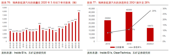 2020年一季度瑞典的新能源乘用车注册总量为18,473辆,同比大增88%,渗透率达到28%,相比2019年的11%显著走高。