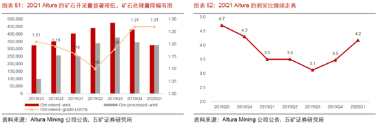 一季度Altura最大的突破在于完成了债务重组方案,潜在的减停产方案成为了可能。一季度公司的重大突破在于完成了涉及金额达到3.05亿澳元的再融资方案,具体包括三项:(1)与债权人达成一致,将1.63亿美元借款的到期日展期至2023年8月,并在2020年内无需支付利息;(2)向机构投资者等增发1120万澳元股票;(3)未来公司具备选择权向LDA Capital定向发行5000万澳元的股票。在与债权人达成一致、暂时化解完燃眉的财务危机后,Altura启动对于减产、停产方案的评估。我们认为,在目前行业周期的底部实施减产,无疑是作为一座中小型矿山着眼长期的的明智之举。