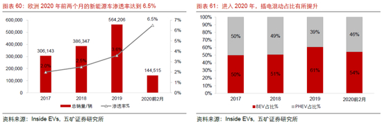 此外,我们已获得2020年前两个月欧洲市场总体的新能源汽车销量数据,前两个月累计销量约14.4万辆,同比大增118%。其中2月的渗透率为6.5%,1月份为6.6%。