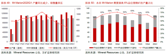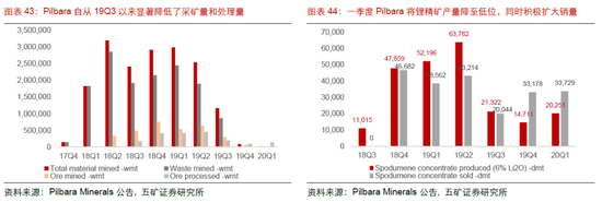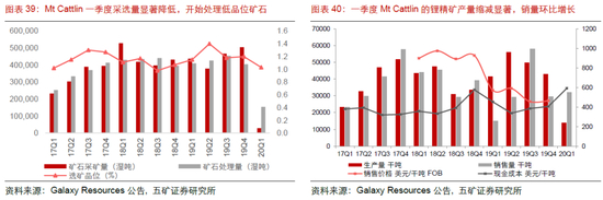 Mt Marion于20Q1开采矿石59.1万吨,同比降低21.9%,环比降低26.5%。开采量临时性走低,主因采矿活动由中央矿坑转移到了N6和N7矿坑,但开采量足以满足选矿之需,以及矿区安全库存的要求。