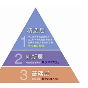 目前新三板设置不同层级,对投资者适当性实行差异化管理。在精选层方面,要求个人投资者的证券资产、法人机构的实收资本\股本,合伙企业的实缴出资总额至少100万元;创新层对应的金额要求最少150万元;基础层对应金额最少200万元。个人还需要具有两年以上的投资经验,或相关的专业背景。