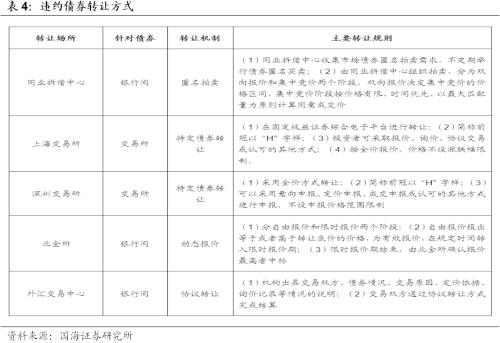 随着监管机构对违约债券处置工作的推动,违约债券转让市场也开始逐步发展。我们梳理了2018年以来相关机构出台的文件,目前对于投资者来说,在债券违约发生后,除了被动等待企业兑付,也可以在同业拆借中心、沪深交易所、北金所等市场通过匿名拍卖、特定债券转让、动态报价、协议转让等方式进行债券交易,进一步提高回收率。