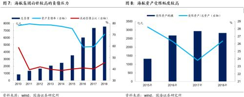 (2)大规模举债下面临巨额偿债压力,资产受限影响集团流动性。长期以来,海航集团都维持较高的资产负债率,大规模的举债融资使得企业每年需要支付巨额的财务费用。以2017年为例,海航集团财务费用支出共288.74亿元,净利润却只达到81.27亿元,债务负担之重略见一斑。在2017年前后去杠杆加快的背景下,海航集团融资成本和融资难度不断加大,债务压力进一步凸显。