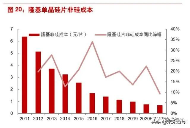 学习曲线决定各厂商绝对成本差异会缩小。从学习曲线来看,随着技术逐步扩散,单一厂商的绝对 成本降幅会趋缓,导致厂商间的绝对成本差异将会缩小,而供过于求下同质产品边际现金成本定价 原则,即使是龙头短期的毛利率也会显著承压。从长期来看,历史上隆基每年的非硅成本降幅维持 20%左右,速度可观;从学习曲线来看,龙头凭借长期积累的“Know-how”能力、规模优势和管 控能力,仍能保持一定的相对成本优势,稳态下维持合理的毛利率。