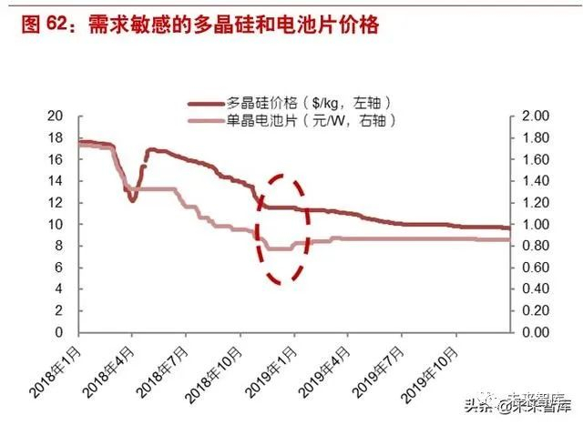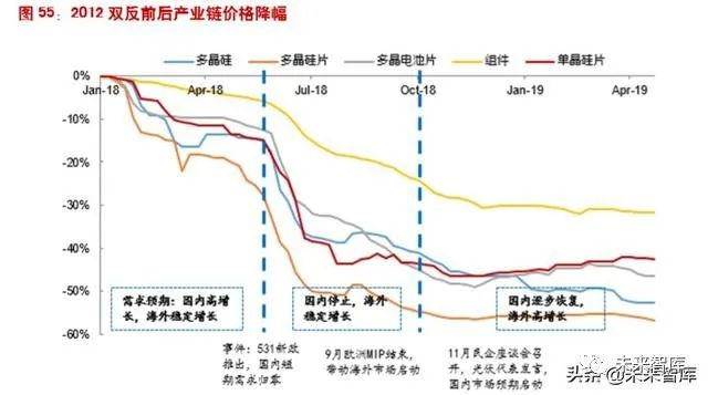 从股价表现看,本次 531 政策出台比较突然,行业和资本市场毫无预期,6 月初股价和产业链价格 同步下跌。而随着各大公司三季报发布,以及四季度出口需求的快速增加带动的产业链价格进入平 台期,相关龙头的股价在 10 月底开始反弹(上证指数的底部在 2019 年 1 月份才见得),随即进 入上行通道。