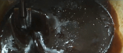 将整张驴皮下锅后,加入东阿的山泉水,均匀受热翻滚,才能熬制出正宗的东阿阿胶