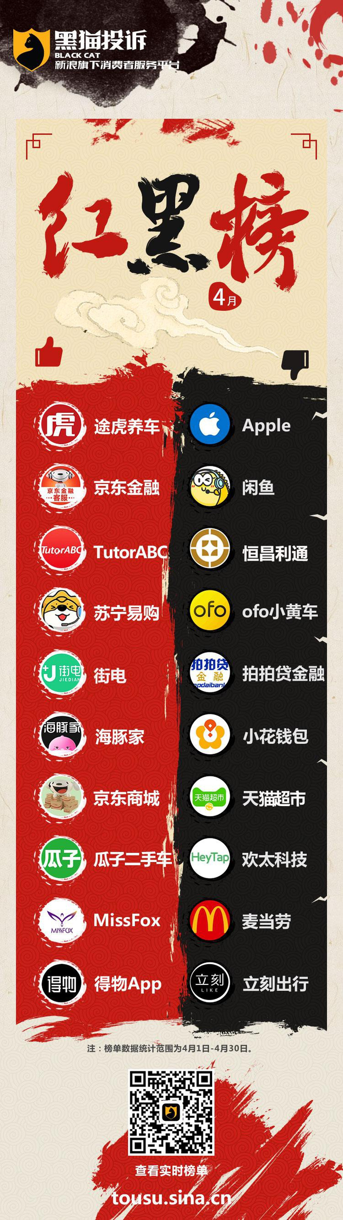 4月黑猫投诉企业红黑榜:麦当劳进入月度黑榜前十