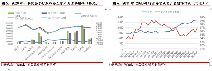 2020年一季度,有色金属板块总库存2740亿元,同比增加287亿元,增幅17%,主要是洛阳钼业收购合并IXM贸易公司增加123亿元,江西铜业和云南铜业存货大幅上涨导致铜行业存货同比增加153亿元。自2016年以来,行业库存水平不断增加,主要是龙头企业的持续扩张带来库存水平的上升,预计后续将经历去库存阶段。2020年一季度,有色金属板块整体负债率为57%,同比增加1个百分点。受金属价格同比下滑,行业盈利水平回落,但总体盈利水平仍较强劲,企业投资活动复苏带来经营杠杆自2015年持续下滑后出现回升,受新能源板块下游需求的拉动,锂、钴、电池材料等新能源材料企业前期的持续扩张带动负债率的上行,电解铝以及锂板块资产负债率整体维持在60%以上。其中锂板块资产负债率快速提高,一方面受天齐锂业收购资产导致负债率快速上升影响较大,另一方面也与 2018年以来碳酸锂价格快速下跌,利润快速下降有关。天齐锂业负债率过高导致近期或将出售对美国锂矿商Albemarle出售西澳大利亚Greenbushes矿的全部或部分股权。