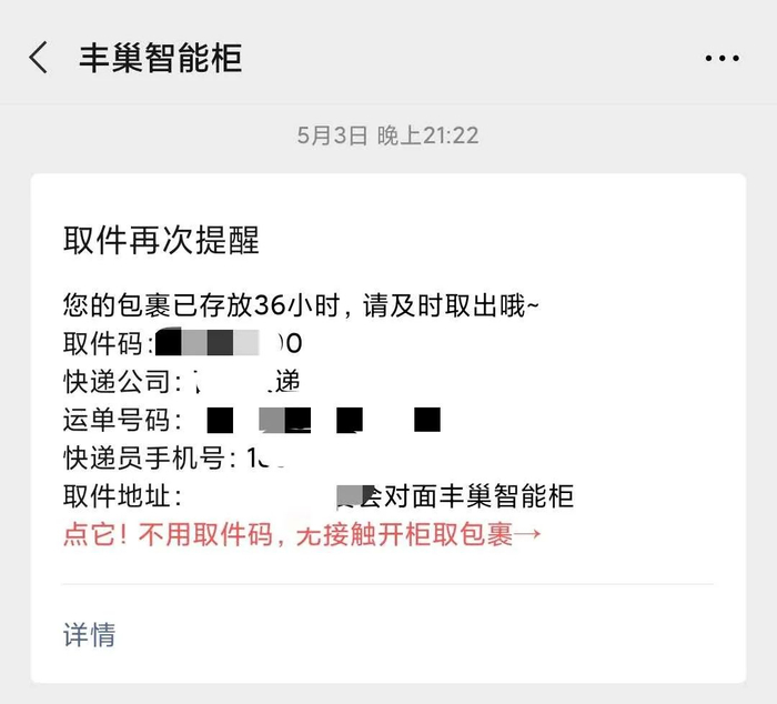 住在上海的小美因疫情在家憋了几个月,碰上“五一”长假终于忍不住决定带着全家去上海周边玩上三天,但前脚刚出门,快递后脚就到了,并在未经同意的情况下被放入了丰巢快递柜。