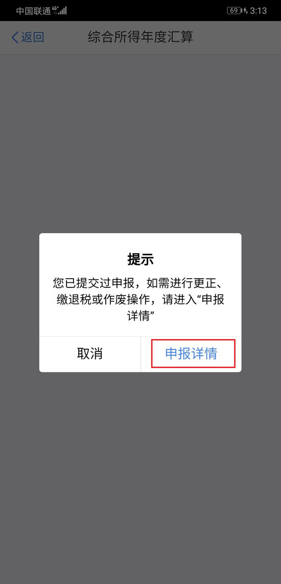 第二,点击【提示】中的【申报详情】。