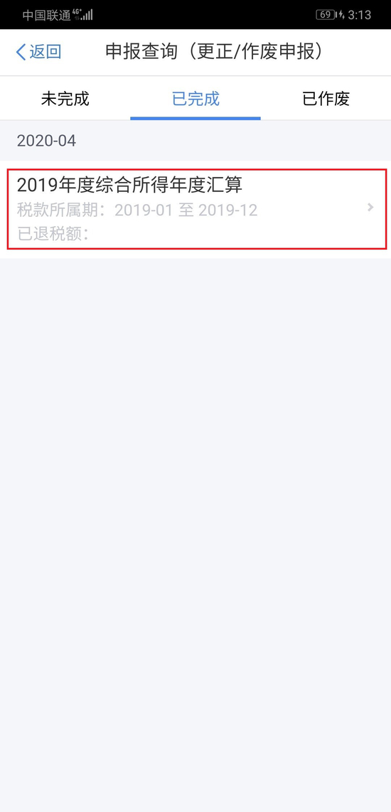 第三,申报查询页面中点击【2019年度综合所得年度汇算】。