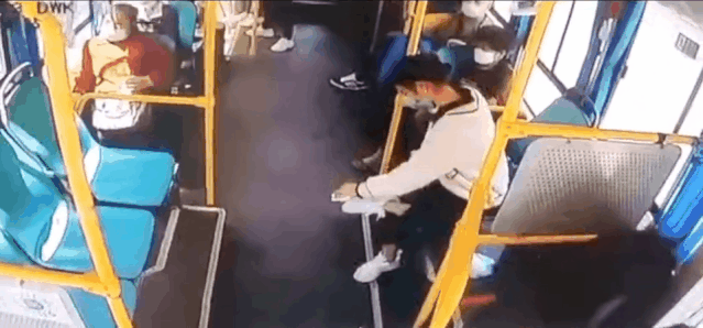 在贵州凯里公交车上帮老人清理粪便的
