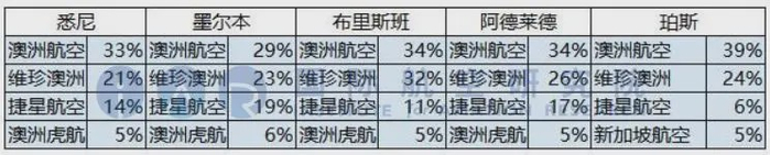 图:澳大利亚国际航线运力份额来源:IAR基于OAG数据整理