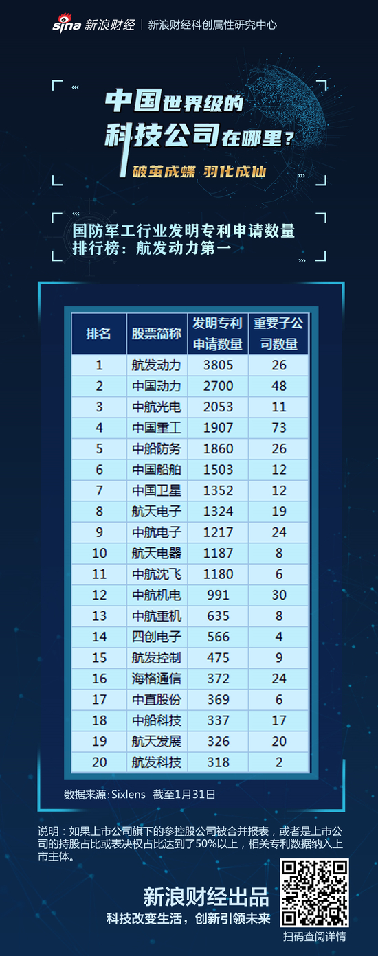 国防军工行业发明专利申请量排行榜:航发动力第一
