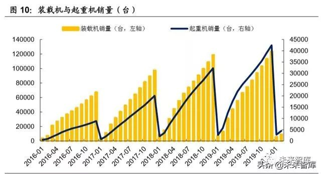 装载机与起重机仍处于低位,未来有望回暖。3 月 27 日,中国中央政治局会议 指出,要加大宏观政策调节和实施力度,特别说明适当提高财政赤字率,发 行特别国债,增加地方政府专项债券规模。受春节假期因素和新冠疫情影响, 2020 年 3 月装载机销量 1.5 万台,同比下降 17.2%。国内市场销量 1.2 万台, 同比下降 19.8%;出口销量 2955 台,同比下降 4.68%。但 3 月销量较 1-2 月 已出现明显回升,未来随着下游企业开工率的提升,装载机与起重机有望进 一步回暖。