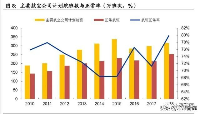 航班正常率仅维持在七成。从近几年民航局发布的《民航行业发展统计公报》数 据来看,主要航空公司航班正常率近三年小幅回升,但整体仅维持在 70%左右。此外,乘客投诉数量逐年攀升,基础设施建设跟不上国内航空消费需求增长的矛 盾日益显现。