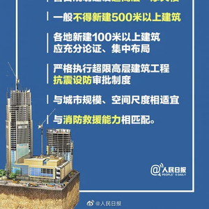 3、各地新建100米以上建筑应充分论证。中小城市要严格控制新建超高层建筑,县城住宅要以多层为主。