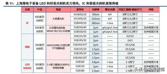 2.1.1 光刻机设备:封装/LED 光刻机相对成熟,IC 前道/面板光刻机仍有差距