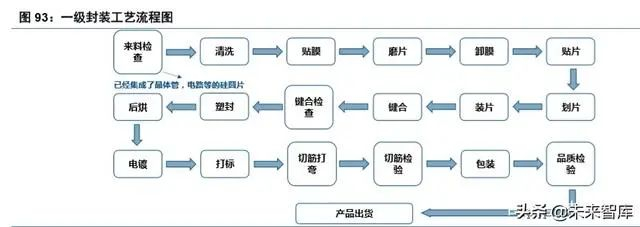 2) 一级封装(Chip level):单晶片和多晶片组装,采用互连和封装等工艺,传统封装主要涉及的封装设 备有黏片机、引线键合机、芯片倒装机、塑封机、切筋成型机、引线电镀机和激光打标机等;先进 封装如 WLCSP 等,还需使用封装用光刻机、凸点制造设备、植球机和金属沉积设备等;