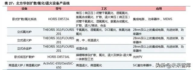 在晶圆直径小于 150mm 的 IC 制造邻域,国内扩散设备(卧式扩散炉)基本自给自足,相关厂商包括 北方华创、中电科 48 所等;而直径 300mm 的集成电路制造邻域,立式扩散炉/氧化炉设备依赖进口,主 要厂商有东京电子、日立国际等,国内仅北方华创可以小批量提供立式扩散炉/退火炉/氧化炉/合金炉。