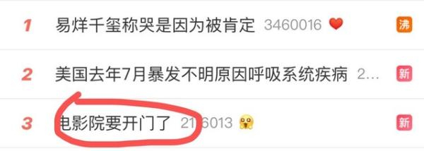 影院可以开业了,消息一出,当即就上了微博热搜。