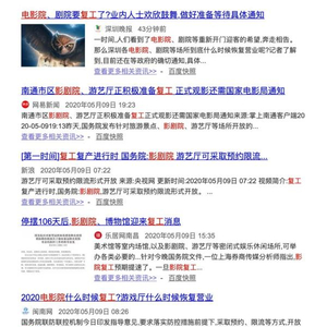 “等复工通知已经太久了!”有影院从业者表达了复工的期待,“之前大家预计就算电影院开,也至少要一到两个月的恢复期,才能够真正打消人们的顾虑,恢复观影的生活。但这个五一,无论是商场消费,还是餐厅就餐,景区游客人数饱和,都反映出人们回归正常休闲娱乐生活愿望的迫切。很多场景的人员密集程度其实是高于影院的,但大家都积极参与进去,也许这个恢复期会比预计的短,‘报复性观影’说不定是指日可待的。”不过,此前也有院线大佬在线上的行业分享活动中提出对暑期档的担忧,因为作为这个档期的主力人群,被疫情耽误的学生们可能这个暑假需要花费更多的时间在学习课业上,从而压缩掉走进电影院休闲和社交的时间。