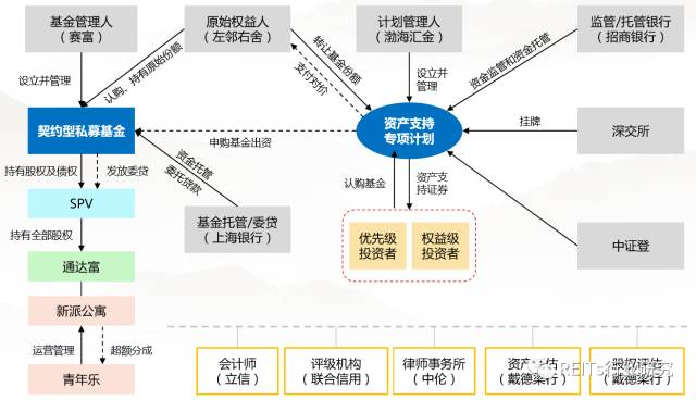 本次发行综合了国际REITs与国内交易所准REITs经验与研究成果,采取了“商业地产私募基金+ABS”的双SPV架构,以首誉光控作为第一层SPV(资产支持专项计划)的管理人,光控安石(北京)投资管理有限公司作为第二层SPV(契约式私募基金)的管理人。