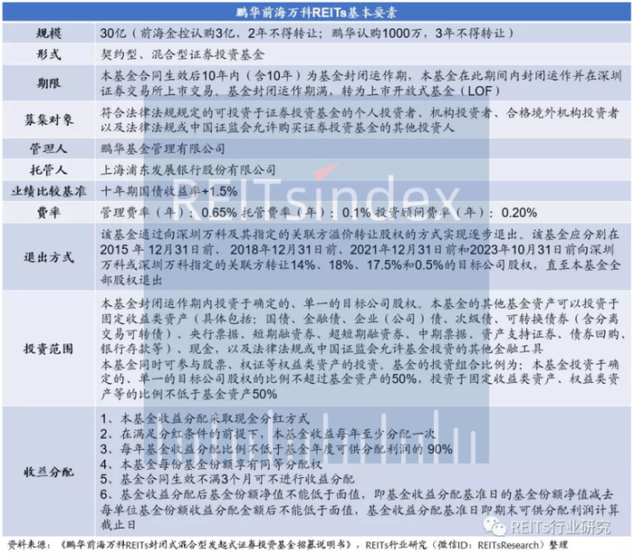 2015年7月,“鹏华前海万科REITs”发行。“鹏华前海万科REITs”首次使用公募基金作为发行载体,发行期其单个投资者的单笔认购门槛仅为10万元。“鹏华前海万科REITs”上市后,其在深交所场内二级市场交易的最低份额为1万元。