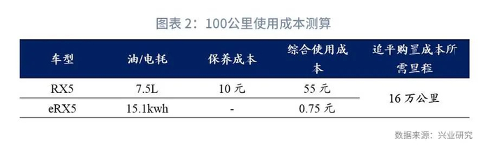 高频使用的纯电动汽车能够实现生命周期内综合成本低于燃油车。使用成本差别来自行驶成本及保养成本。以荣威RX5和ERX5为例,燃油版本(1.5T)油耗为[1]7.5L/100km;纯电版本电耗[2]15.1kwh/100km。按照95#汽油6元/L,电费0.5元/kwh计算,油车、纯电车每100km行驶成本分别45元和7.5元。同时,燃油车保养成本高于电动车,假定保养成本差为10元/100km,整体看纯电汽车使用成本较燃油车低47.5元/100km。照此计算,静态情况下追平8.75万元的购置价差需行驶超18万公里,即在8年的质保期[3]内每年需要行驶2.25万公里(日均行驶62公里)以上才能在全车生命周期内与燃油车持平。普通用汽车年平均行驶里程为1-2万公里之间,再考虑购置成本差额带来的资金占用成本及燃油车较高的残值,家用纯电汽车全生命周期平均综合成本略高于燃油车。但运营类车辆如出租、网约车等年均行驶里程在10万公里以上,1-2年就能够运营能够收回购置成本差,全生命周期能够实现一定的经济效益。