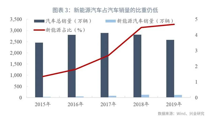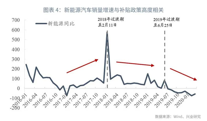 产业仍处于技术高速发展期,补贴退坡是大趋势。2016年以来,新能源汽车补贴政策逐年变化,不断提升技术要求并减小补贴幅度,补贴扶持下新能源汽车销量持续高速增长,对燃油车的渗透程度不断提升。至2019年末,新能源汽车销量超120万辆,占汽车销量的比重已达4.68%,形成了较为可观的市场容量,一定程度满足产业发展需要。同时,新能源汽车技术仍处在高速的技术迭代中,2014年国内动力锂电池价格平均值为2478元/kwh,能量密度84wh/kg,到2019年宁德时代电池平均售价[4]959元/kwh,量产电池能量密度超过240wh/kg,5年时间电池价格下降61%,能量密度增长286%。高速技术迭代下新技术可能很快沦为落后产能,因此过渡的补贴可能导致过渡品生产规模过大,提前消耗市场需求,也会降低企业产品升级意愿,拖累技术迭代脚步,因此补贴的持续退坡也成为了政策的必然选择。