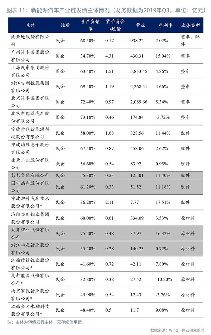 2020年新能源汽车销量有望企稳,行业盈维持,但须关注部分上游企业的信用风险。我们整理了新能源汽车产业链的发债主体,其中整车制造类企业以大中型国企为主,在传统汽车业务支撑下整车厂能够承受新能源汽车的业务的亏损,在毛利退坡时能够相对从容的在市场占有率和利润率之间做出取舍,整体风险不高。产业链企业主要包括零部件及原材料供应商,以民营企业为主,受益产业长期发展趋势,整体可控。但杉杉集团有限公司其他业务较多,导致债务负担较重,存信用风险;国轩高科股份有限公司应收账款、存货增速较快,新产能仍处于投资阶段,也需要持续关注其营收及现金流变化。上游原材料供应商以钴、锂等有色企业为主,行业集中度低导致成本转嫁能力较弱,随着新能源补贴持续退坡经营压力有加大的风险。目前有信用债存续的主体包括洛阳栾川钼业集团股份有限公司、天齐锂业股份有限公司和浙江华友钴业股份有限公司,其中华友钴业面临钴价下跌风险且自身债务负担较重,短期信用风险不高但需持续关注产品价格波动可能导致的信用风险上升;天齐锂业大额收购后导致流动性紧张,信用风险偏高。