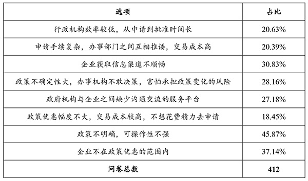 表2:企业享受政策优惠不足的原因(多选)