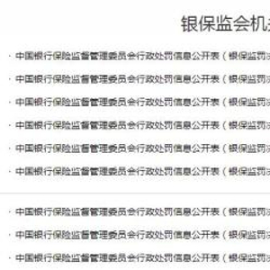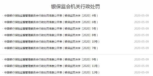 银保监会一日公布9张罚单 国有六大行等被罚1970万元