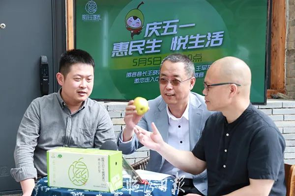 隰县县委副书记、县长王晓斌(中间)参与直播带货。微信公众号@临汾日报 图