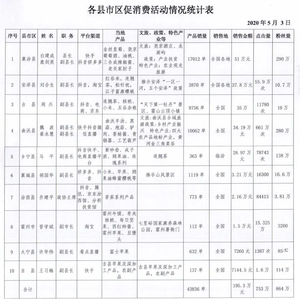 5月4日临汾各县(市、区)领导直播带货统计表 微信公众号@临汾广播电视台图文频道 图
