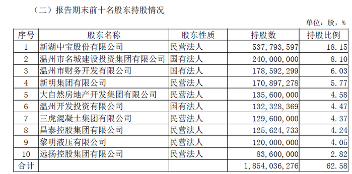 可以看到,涉房信贷违规就是罚单案由中的重要一项,而从温州银行年报披露的股权结构看,截至2019年末,温州银行的前十大股东有新湖中宝(持股18.15%)、温州名城建投(持股8.1%)、新明集团(持股5.77%)、大自然房地产开发集团(持股4.58%)、三虎混凝土集团(持股4.37%),主业多为房地产开发和建筑行业。
