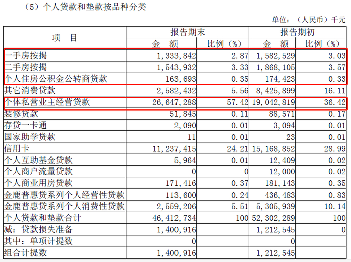 具体来看,公司金融业务上,存款余额占存款总额的70.49%,比上年初增长增幅10.54%;公司业务贷款余额755.55亿元,占各项贷款总额的61.95%,比年初上升40.99%。公司存款结算客户数14,958 户,较上年末增加1,242 户,增长9.06%;法人贷款户数2,433 户,较上年末增加862 户,增长54.87%。在个人贷款结构中,比重最大的是经营贷,占比57.42%。