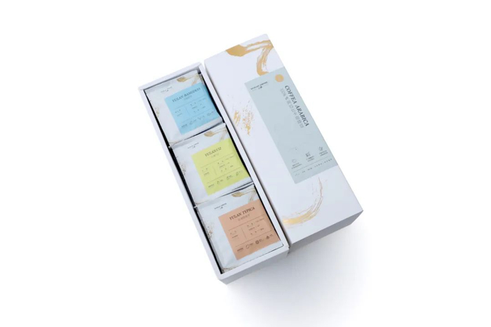 这套咖啡组合装,有3种风味,均为100%阿拉比卡咖啡豆,有咖啡豆和挂耳包2种可选。