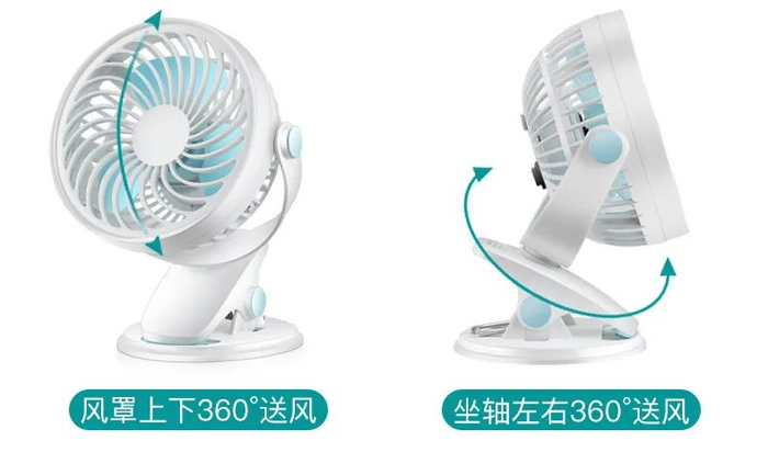 风扇的脑袋可以360°旋转,并且可以停留在其中任意一个角度。