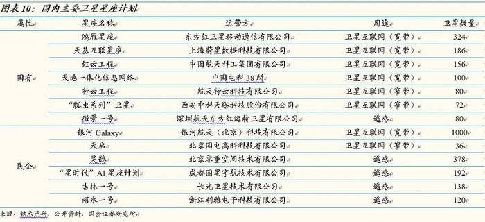 国内主要低轨卫星互联网星座计划
