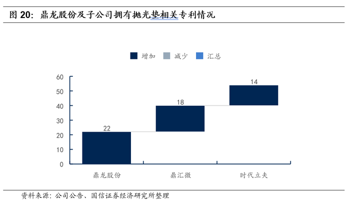 国内抛光垫领先企业鼎龙股份,2019年共拥有专利555项,其中抛光垫制造及工艺相关发明及创新有效专利约54项,与海外企业具有一定差距。