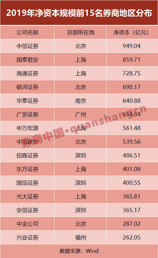 相比来看,京沪地区大型券商资本金至少500亿以上。剔除最高值(中信证券),北京地区券商代表如银河证券、中信建投,分别有690亿、540亿净资本;上海地区大型券商如国泰君安860亿、海通证券729亿。