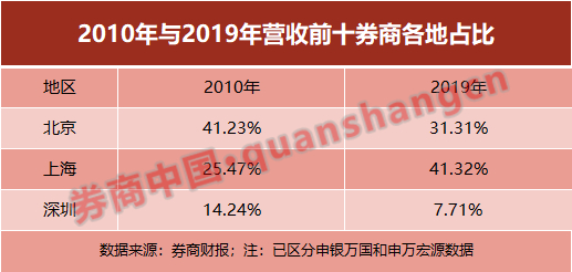 2019年券业“成绩单”揭晓,营收规模前十名名单中,深圳仅招商证券1家上榜,上海以4席超越深圳、北京雄踞榜首。北上深券业竞争力再现新格局,深圳券商第一梯队濒临大溃败。