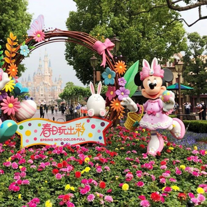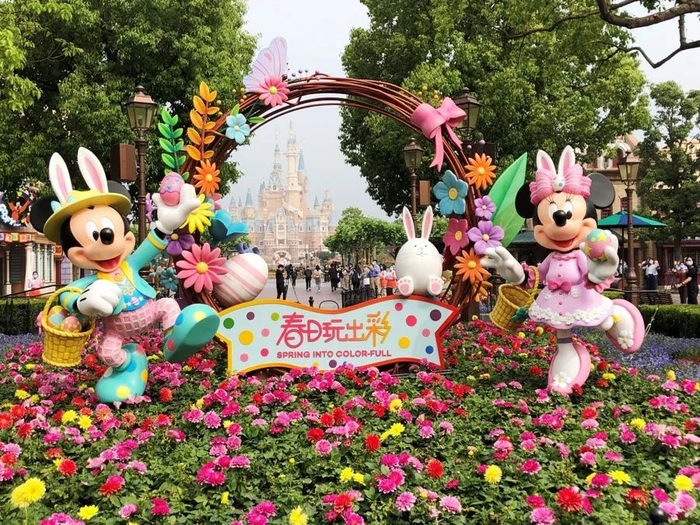 今早,在乐园正式开园之前,一场特别的庆祝仪式在换上春季新装的“花样米妮”花坛前举行。