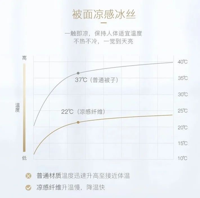 它本身自带凉感,一摸上去就清清凉凉的,升温慢,能够整晚保持人体适宜温度,不冷不热,一觉到天亮。