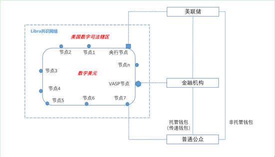 若与Libra合作,美联储无须考虑系统建设成本,也不用担心服务压力。金融机构作为Libra的虚拟资产服务提供商(VASP),为普通公众提供托管钱包服务(托管钱包也就是此次数字美元计划中的传递数字美元钱包)。普通公众亦可持有限额管理的非托管钱包。非托管钱包由Libra提供,美联储无须操心。数字美元的兑换则可通过指定经销商开展。也就是采用双层架构:指定经销商从美联储或Libra网络购买数字美元并将其出售给Libra网络的实体,为用户提供市场便利。对于救助资金,美联储可将其直接转入用户的钱包。托管钱包用户通过VASP向美联储进行身份认证,非托管钱包用户则可通过Libra的链外通道,以各种方式提交用户身份信息以及其他必要的证明文件,证明用户符合政府救助标准等,以使数字美元覆盖所有人群。