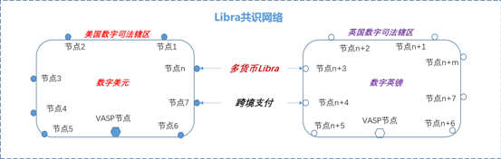 耐人寻味的是,Libra2.0在白皮书里“呼唤”央行数字货币(CBDC)的推出,表示如果各国央行推出CBDC,将可直接与Libra网络集成,简化Libra储备资产操作,降低信用风险和托管风险,并“旗帜鲜明”地表达出对公私合营的兴趣。它说“协会仍致力于公私合作,以推动金融体系创新。事实上,随着中央银行数字货币(CBDC)的前景成为现实,我们希望Libra支付系统能够升级以支持这些公共部门创新,这是我们的设计原则”,甚至它直接提出可用央行数字货币取代单货币Libra。也就是说,在Libra网络上可以对接各国数字司法辖区发行和流通本国CBDC,而Libra网络只剩下多货币Libra,它以各国CBDC为抵押按权重通过智能合约组合生成,仅用于跨国支付。见下图。