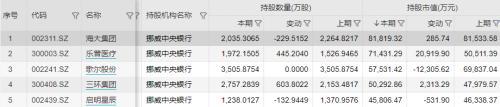 我们在wind上还可以看到挪威央行作为 QFII 出现在今年一季度26家A股上市公司的前十大流通股东中,其中前5大重仓股是:海大集团、乐普医疗、歌尔股份、三环集团、启明星辰。